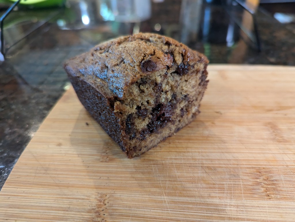 Beat brown sugar and butter with an electric mixer until smooth. Stir in eggs, rum extract, and mashed bananas until well blended. Add the flour, salt, and baking soda until just combined, then add the nuts and chocolate. Pour batter into the prepared loaf pan. (Depending on whether you add the nuts and/or chocolate, you might only need one loaf pan. Aim to fill a pan 3/4 full and put any extra into another baking pan.