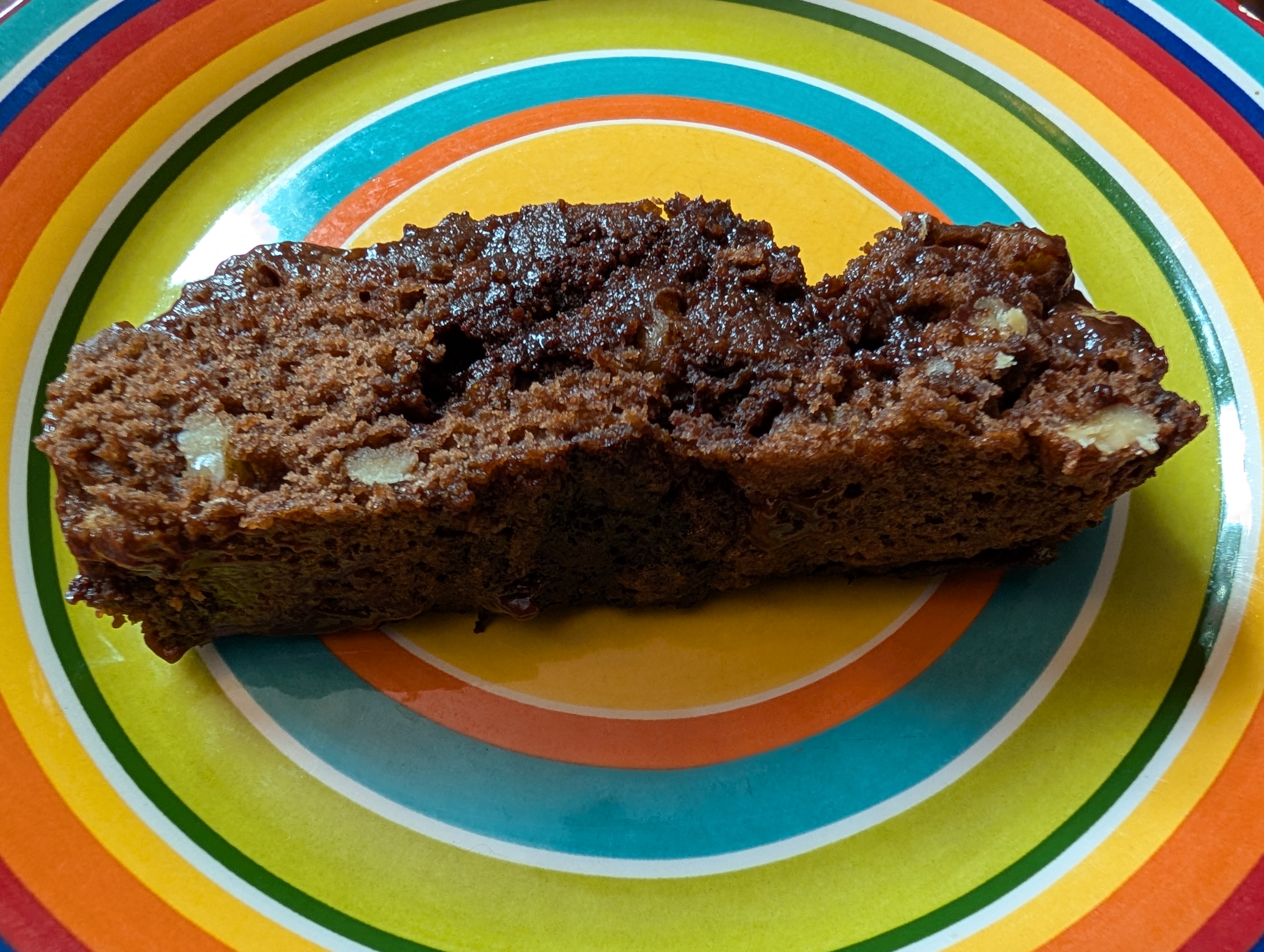 The version I had said to bake for 40 minutes. Just looking at the photo above, you can probably guess that this wasn’t enough time. It still tasted good, and the lack of eggs in the recipe means that it’s safe to eat, but I’m going to suggest trying for at least 50 minutes just to be safe.