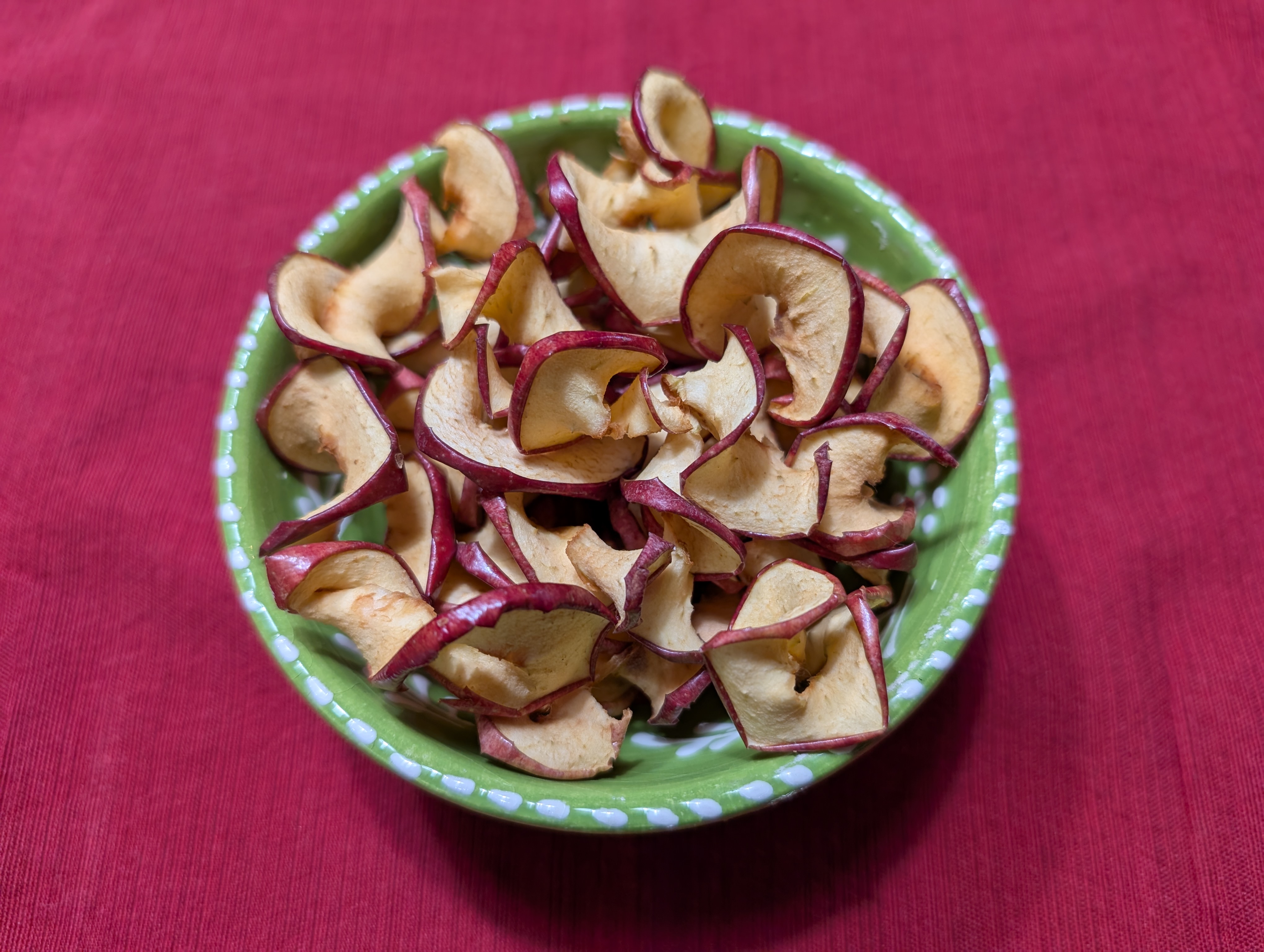 Drying your own apples is a great way to preserve a surplus harvest and create a healthy snack with no preservatives. They’re a little soft and curl up as they dry, giving them an eye-appealing texture.