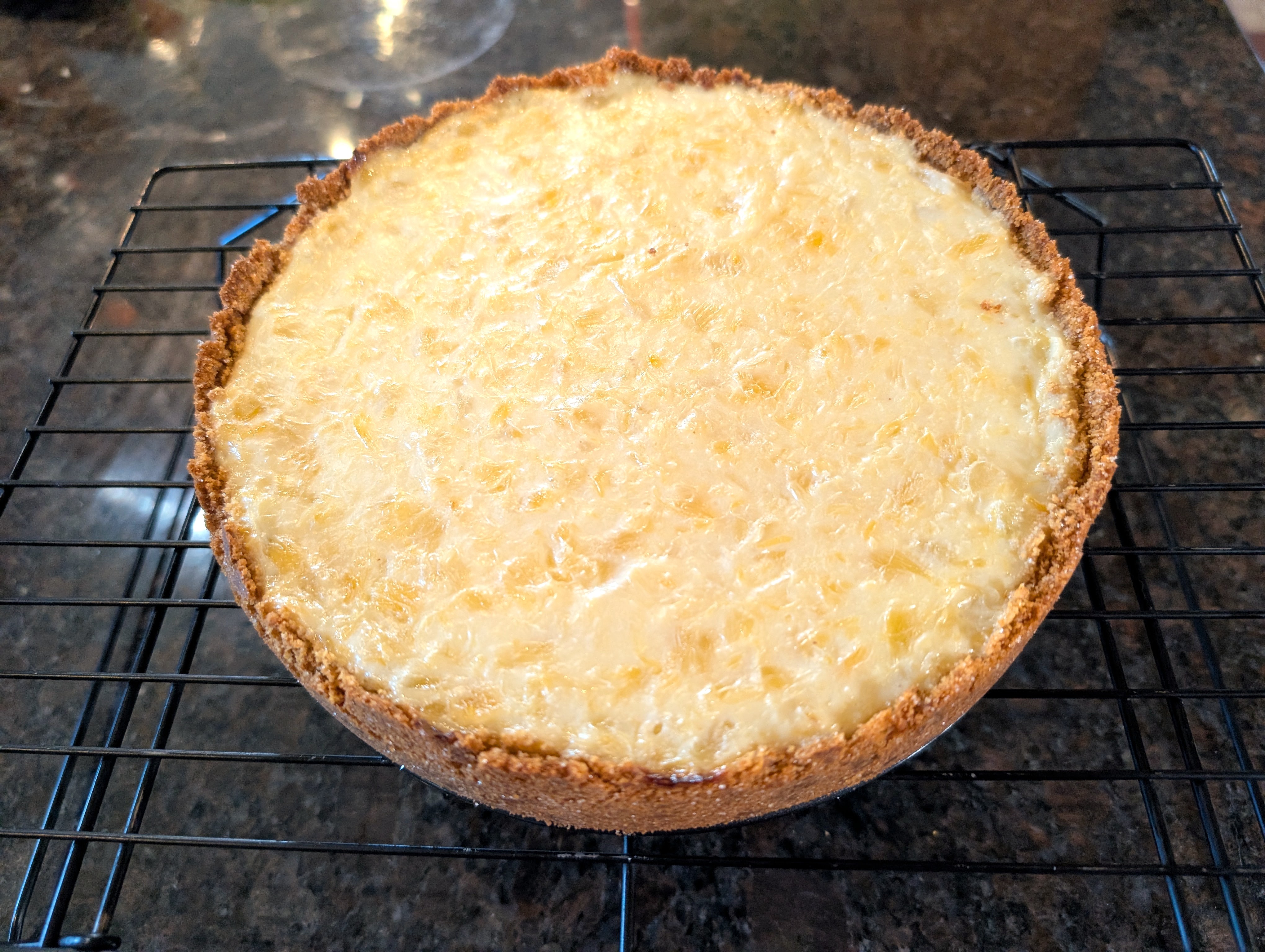 There is a crust recipe below from the original recipe — but since it’s unclear how many pies upon pies it would supply (hey, I’m being poetic), you can swap in a single-use crust recipe like my graham cracker crust. I decided to try baking this batch in a tart pan. There’s a bit of a learning curve in getting the graham mix pressed into the bottom and sides evenly, and your mileage may vary. But it was a fun experiment, even if my edges look a little uneven.